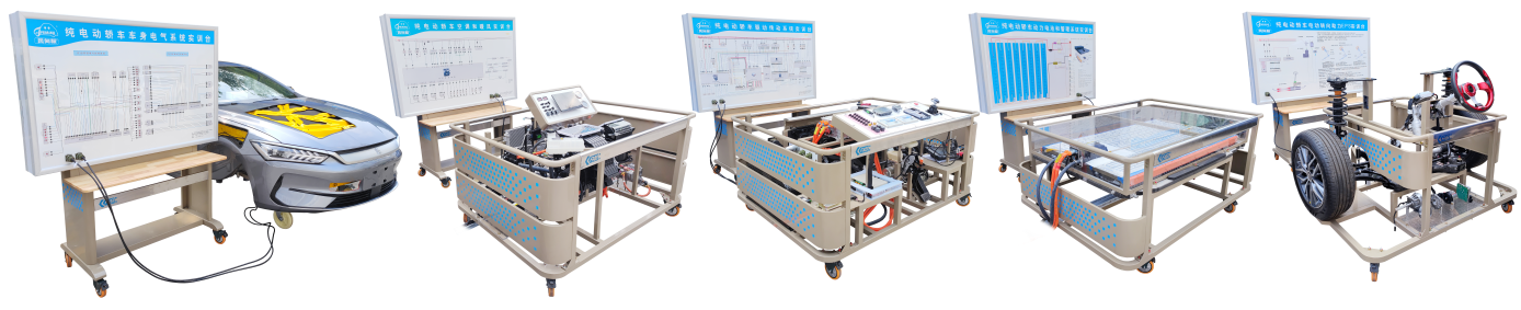 將一輛整車(chē)分成5大系統(tǒng)實(shí)訓(xùn)臺(tái),分別為車(chē)身電氣系統(tǒng)實(shí)訓(xùn)臺(tái)、空調(diào)和暖風(fēng)系統(tǒng)實(shí)訓(xùn)臺(tái)、驅(qū)動(dòng)傳動(dòng)系統(tǒng)實(shí)訓(xùn)臺(tái)、動(dòng)力電池和管理系統(tǒng)實(shí)訓(xùn)臺(tái)、電動(dòng)轉(zhuǎn)向助力EPS實(shí)訓(xùn)臺(tái),組成一站式教學(xué)系統(tǒng),一鍵控制,5臺(tái)設(shè)備聯(lián)接在一起運(yùn)行,和實(shí)車(chē)運(yùn)行工況相近,便于學(xué)員多個(gè)角度去學(xué)習(xí)分析和認(rèn)知;適用于本科、中高等職業(yè)技術(shù)院校和培訓(xùn)機(jī)構(gòu)對(duì)純電動(dòng)整車(chē)?yán)碚摵途S修實(shí)訓(xùn)的教學(xué)需要。